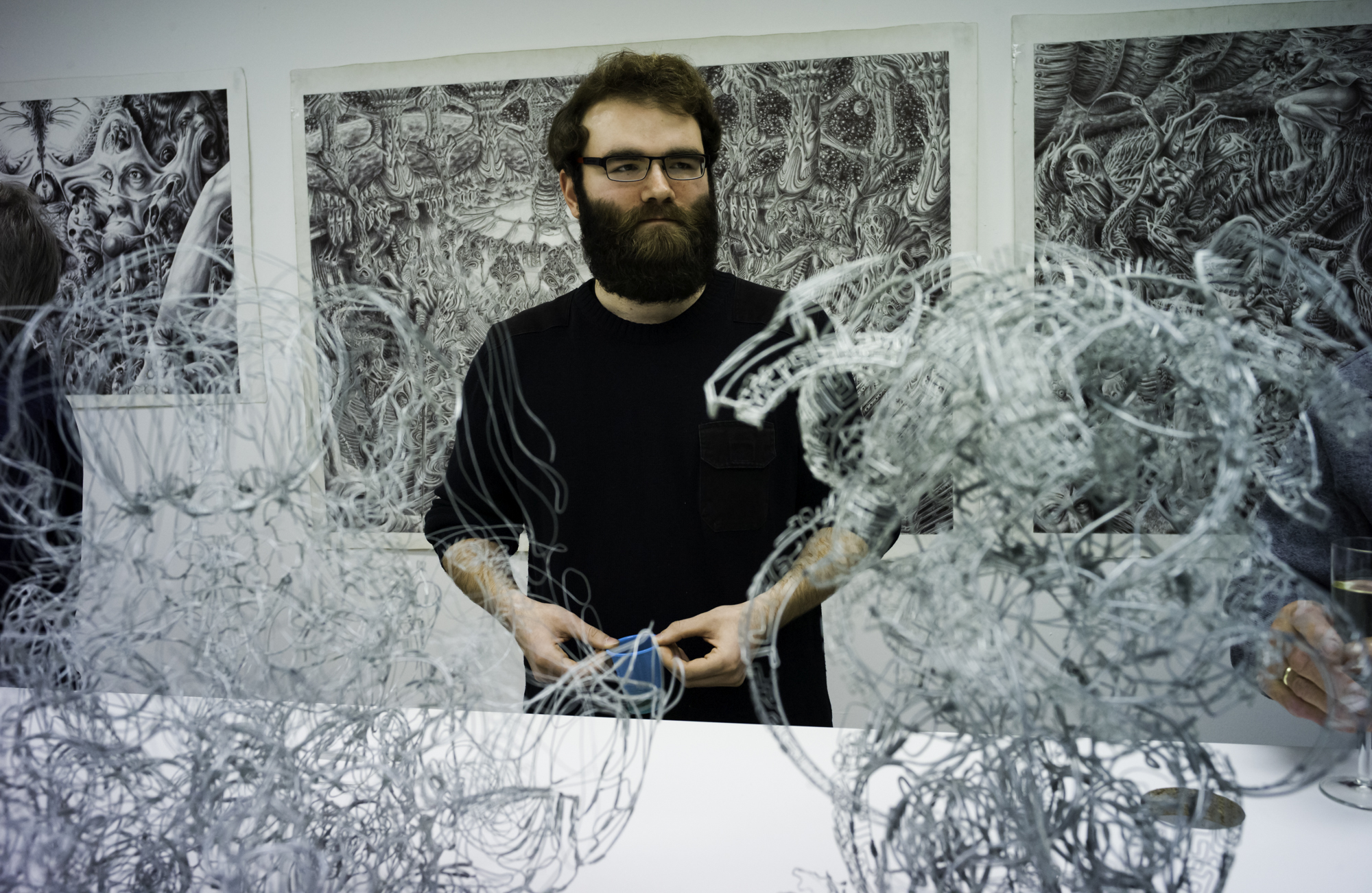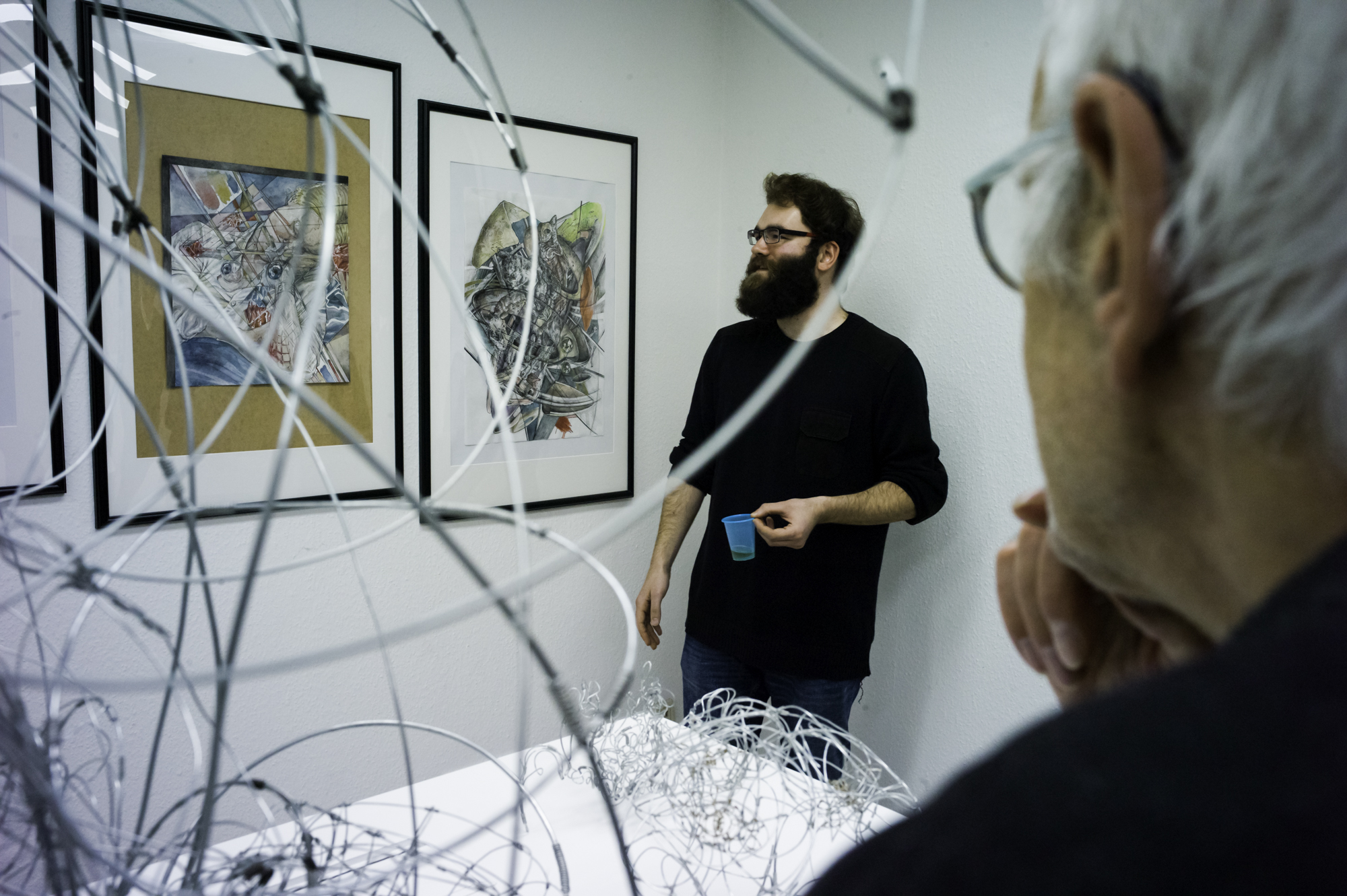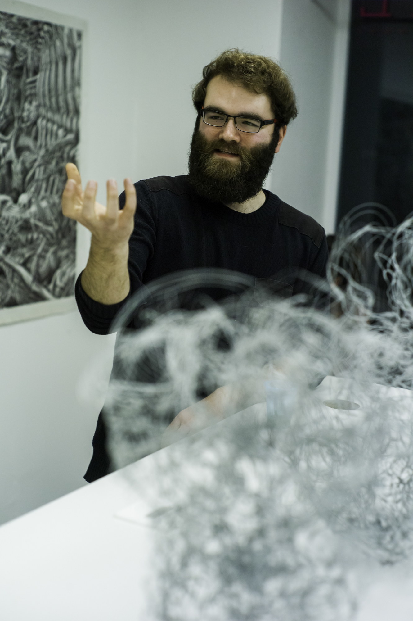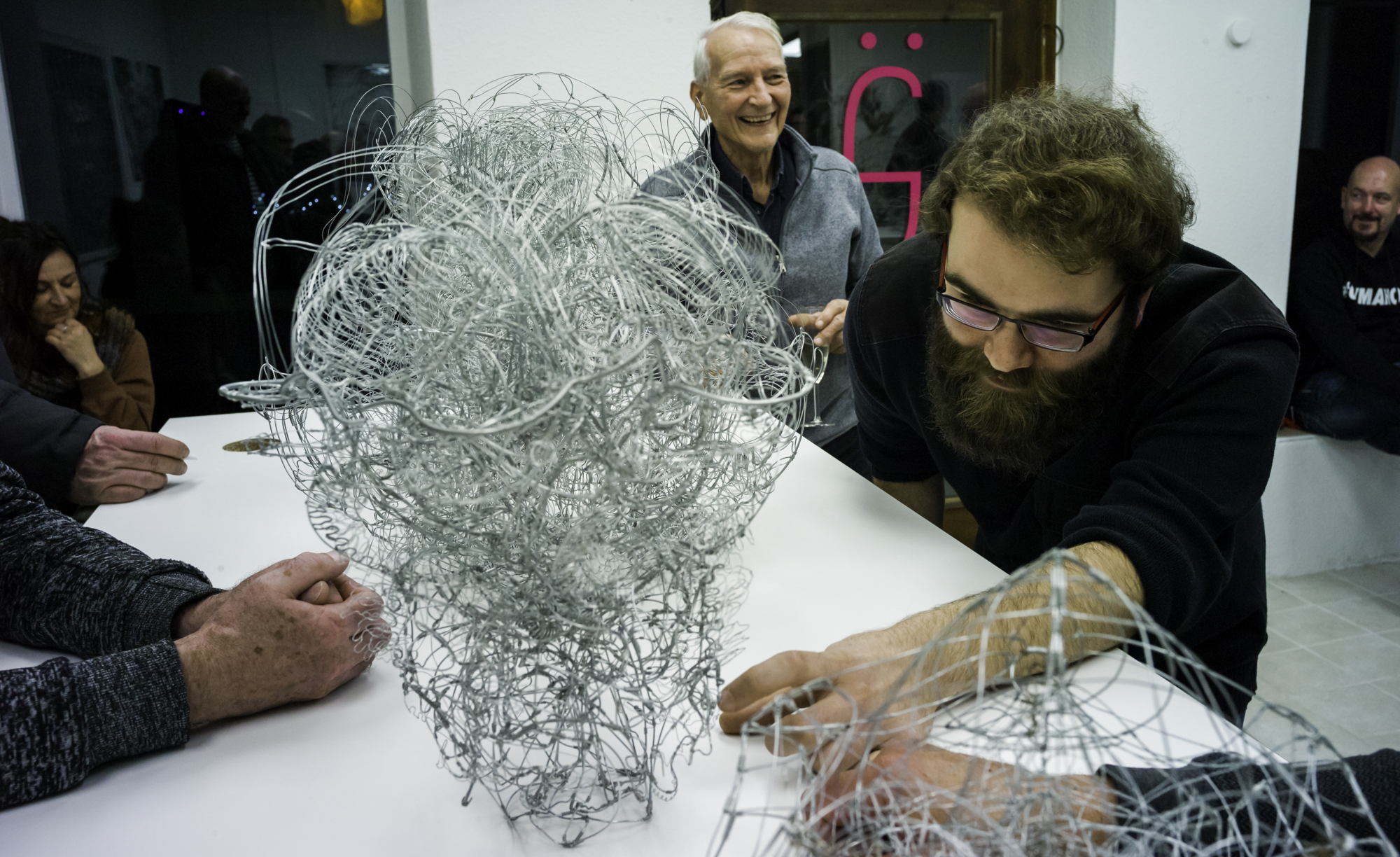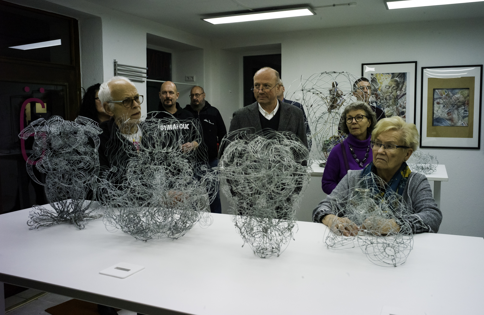 Unser Stipendiat Vincent präsentierte seine komplexen Drahtskulpturen und Zeichnungen am 29.11.2019 und am Altenaer Atelierwochenende am 2. Advent in seinem Atelier Lennestraße 44.