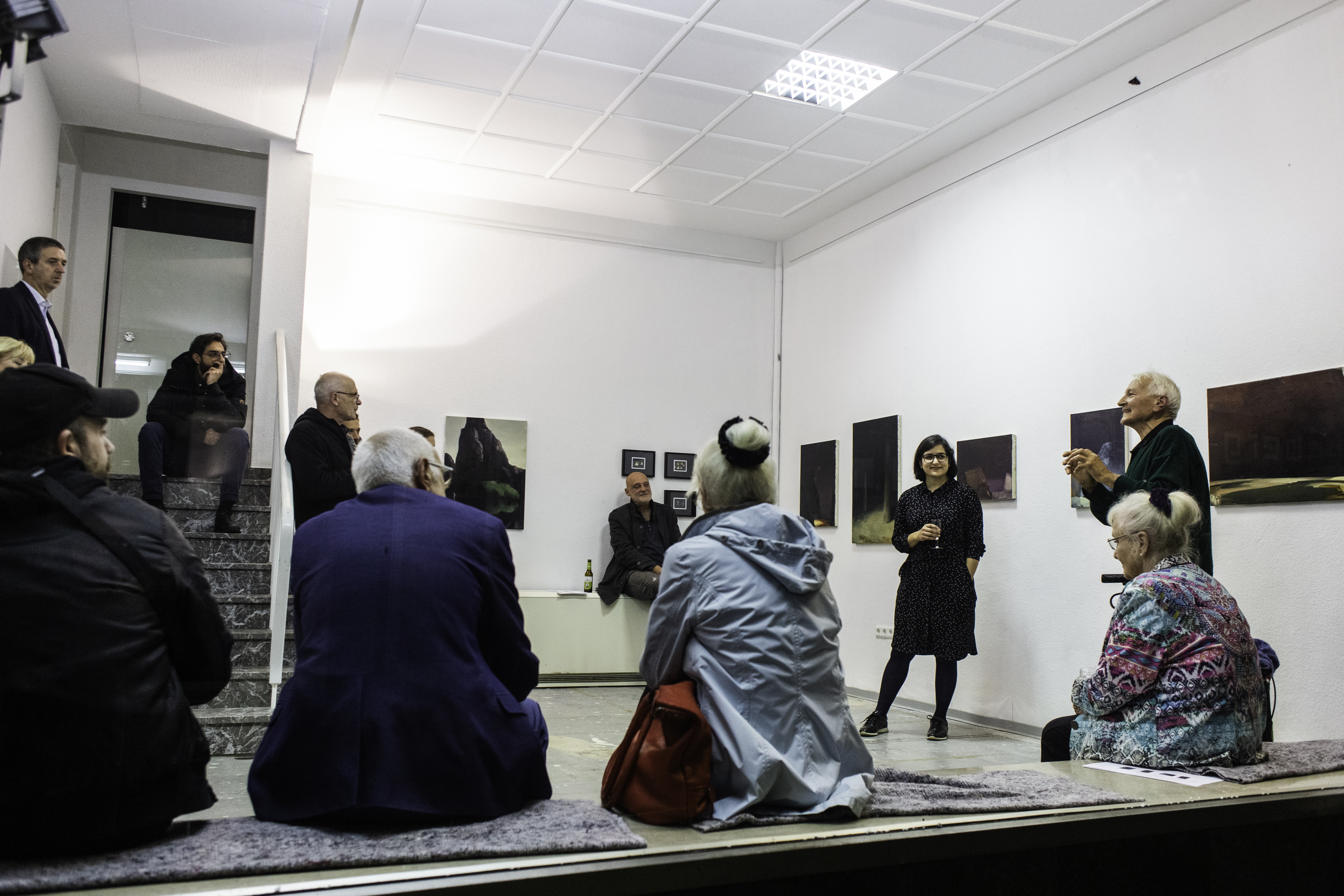 Nach der Begrüßung durch Vorsitzenden Matthias Rüth führte Helmut Zimmer fulminant in die Bilderwelt von Mona ein. Ihre Bilder zeigen Berglandschaften voll Kraft und Poesie, einerseits sehr dunkel, aber auch mit einem visionären „Lichtblick“. Sowohl handwerklich als auch künstlerisch auf hohem Niveau sind es moderne Interpretationen der traditionellen Landschaftsmalerei.